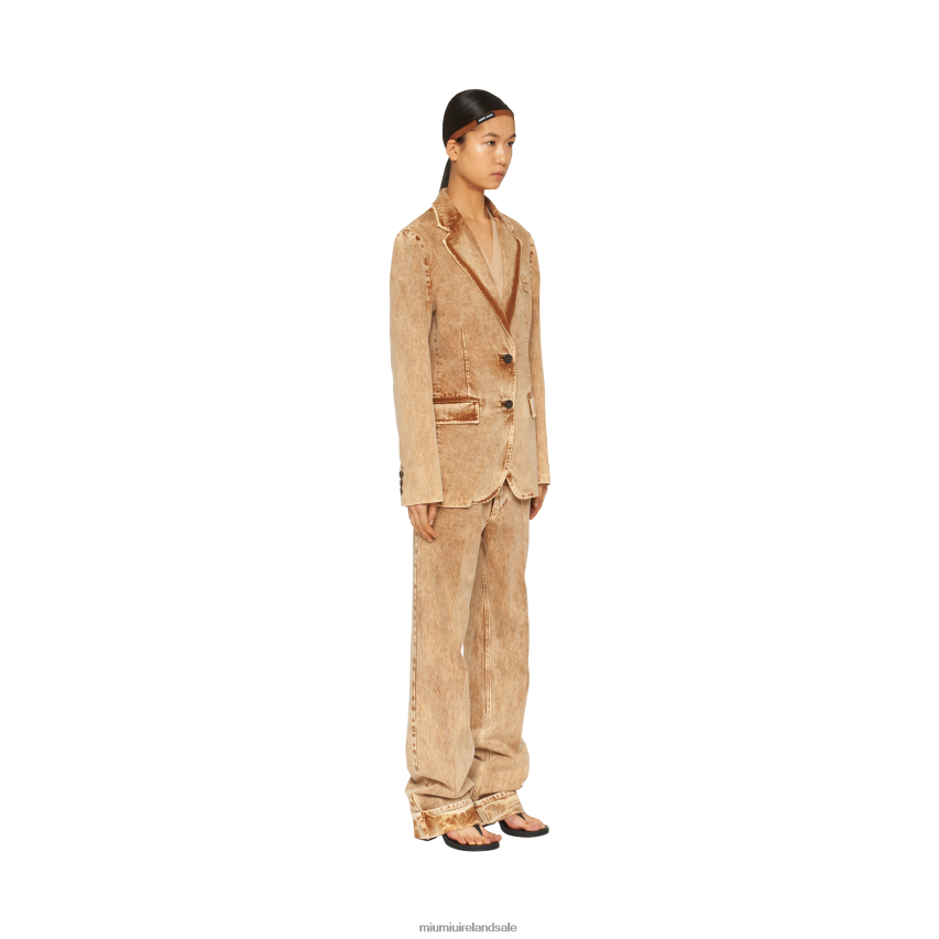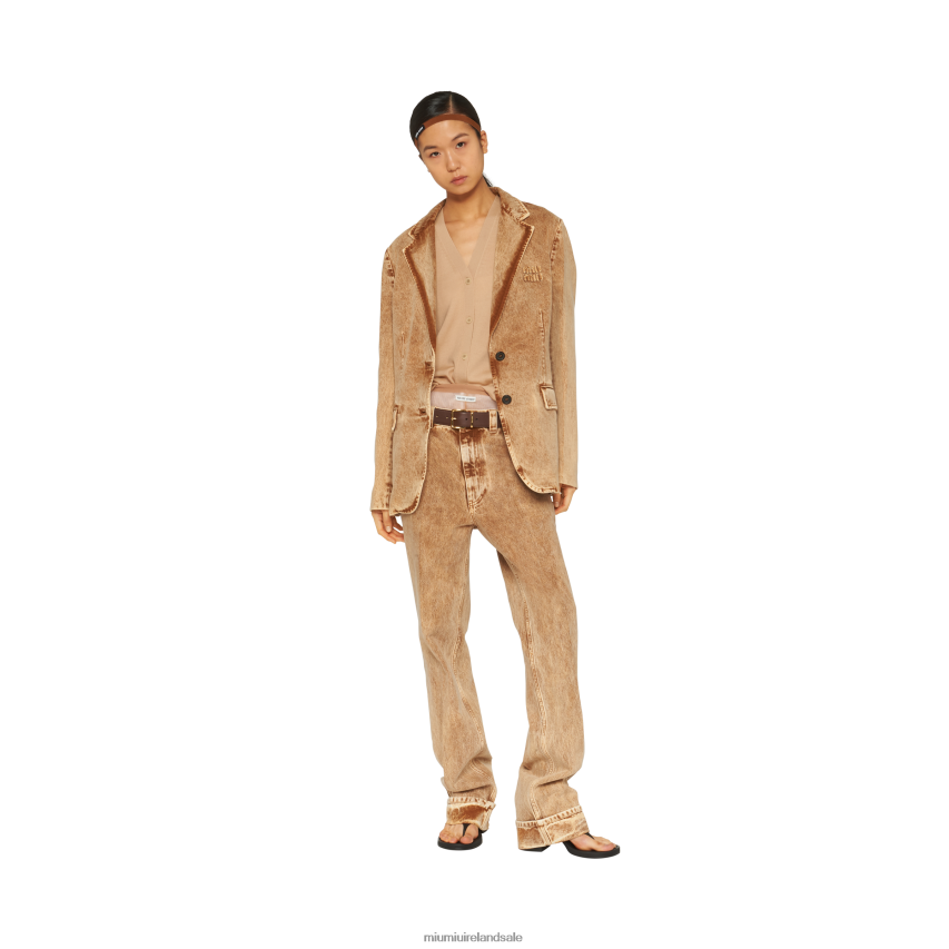 IE Miu MiuReady To Wear Marbleized Denim Jacket Cognac XJN62J458