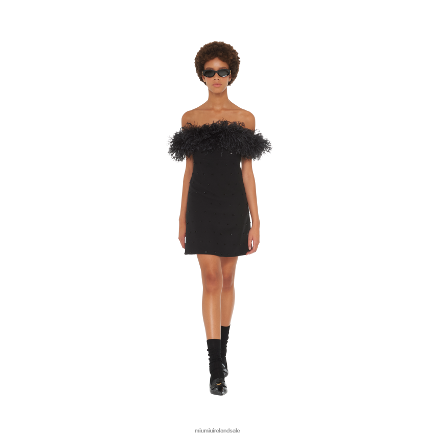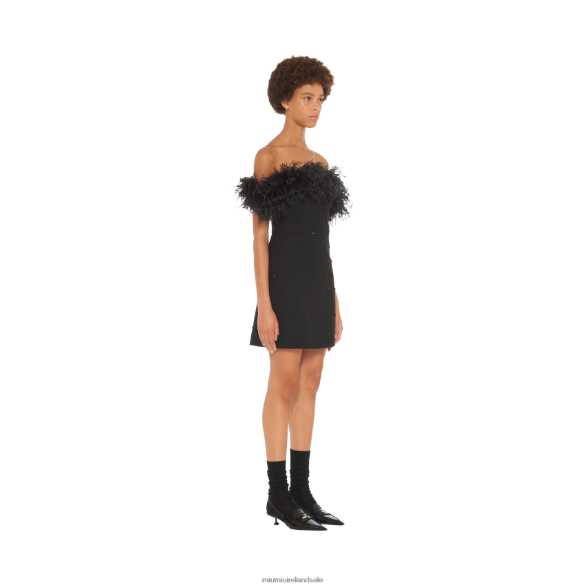 IE Miu MiuReady To Wear Embroidered Tricotine Dress Black XJN62J432