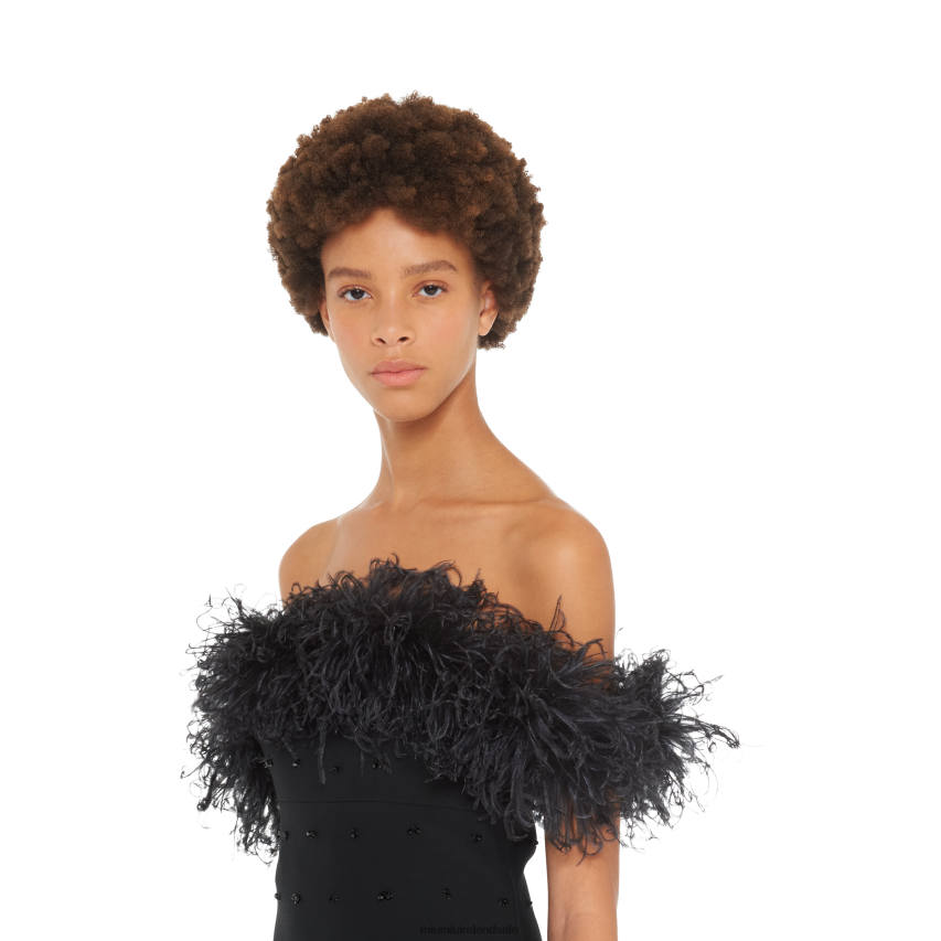 • Marabou feather embellishment on the neckline