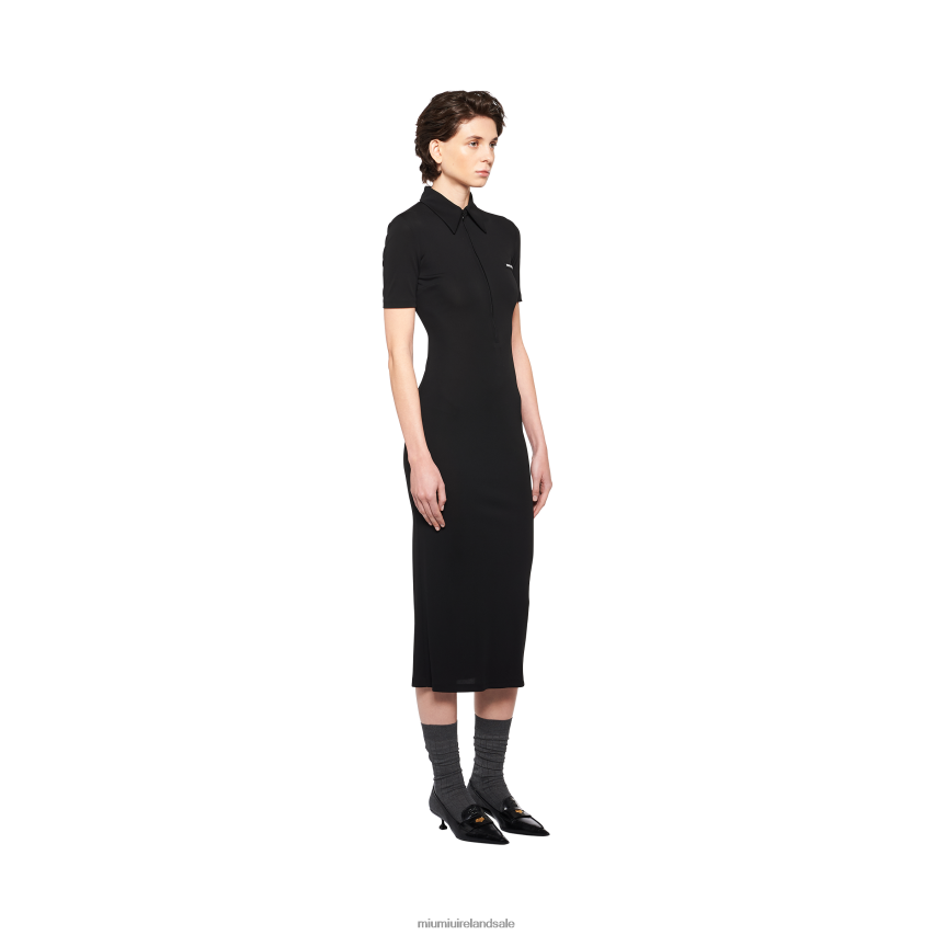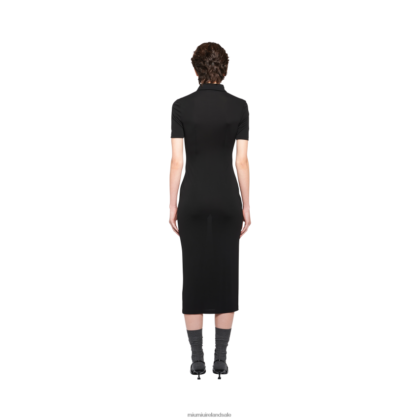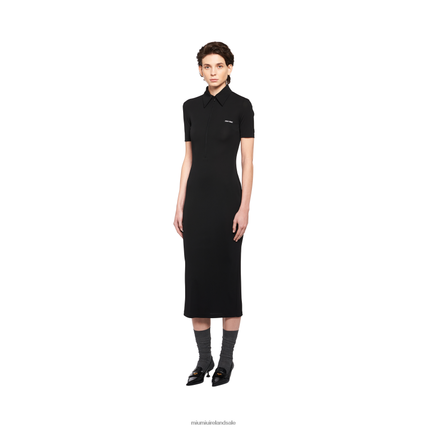 The elongated silhouette of this dress is enhanced by the special touch of organzine and casual details. The shirt collar combined with the zipper closure add sporty details to the garment. The knit logo in a contrasting color completes the design with an iconic note.