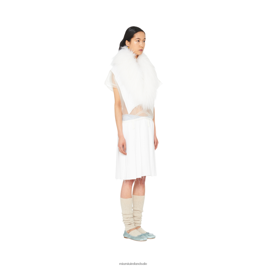 Miu Miu plays with apparently distant aesthetic codes to create a new definition of elegance. This sable dress defined by an impalpable, fluid silhouette is embellished with a fine Kidassia Cashmere collar.