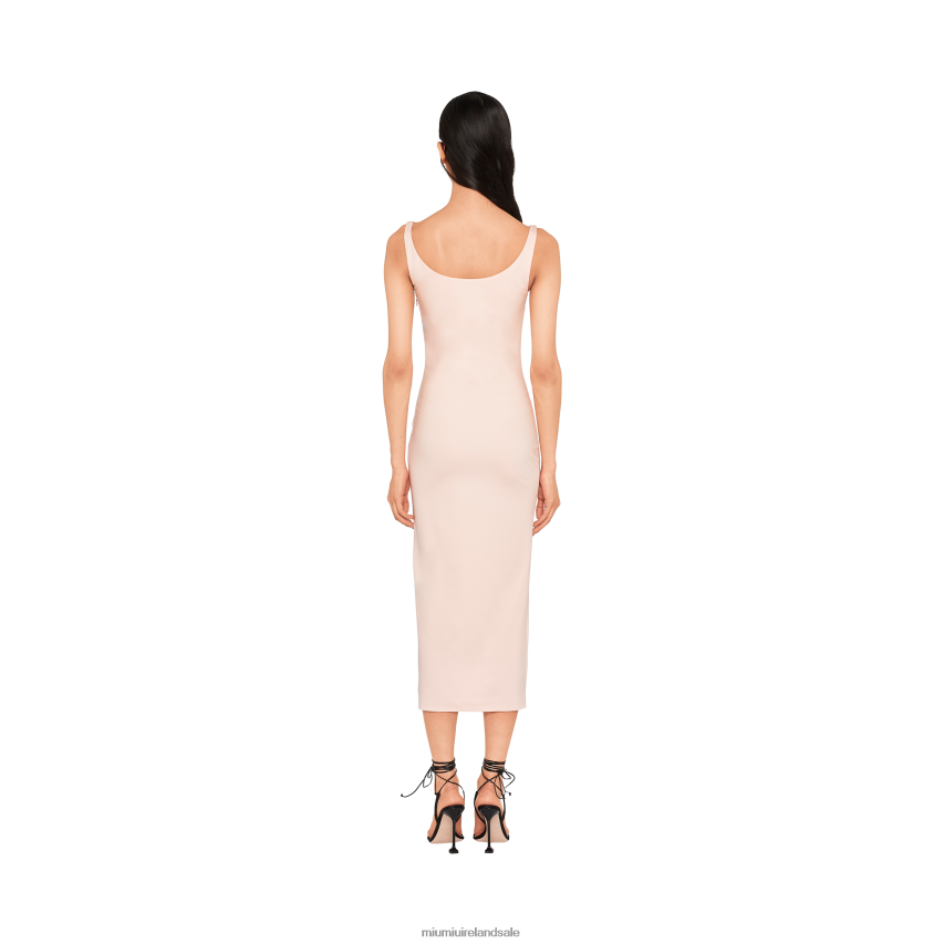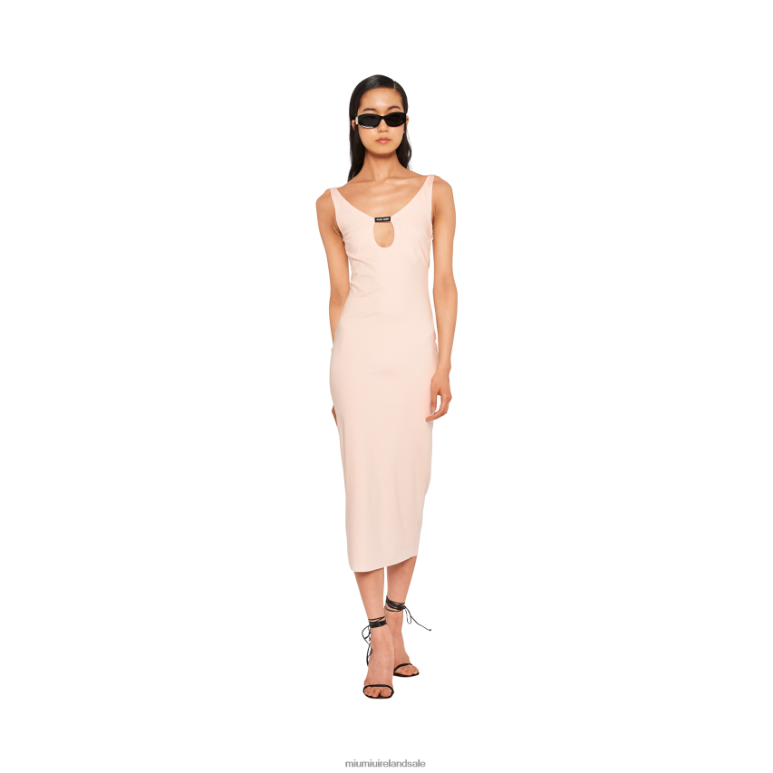 This sleek, ultra-feminine jersey dress is characterized by its minimalist silhouette accented with the Miu Miu jacquard logo in a contrasting color.