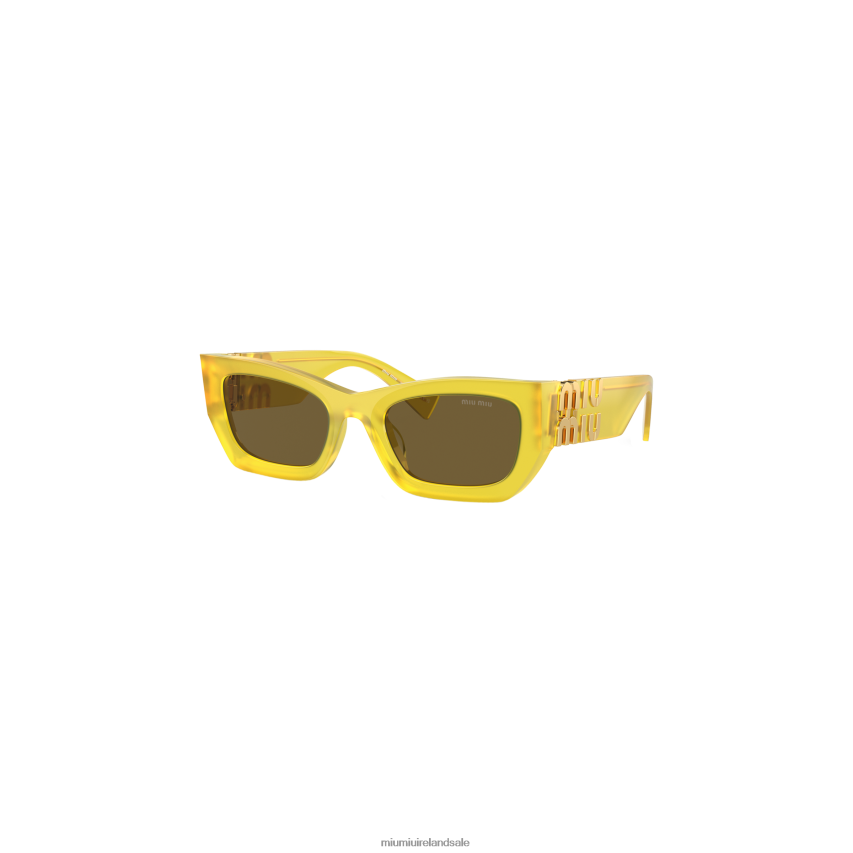 Acetate sunglasses with a bold, rectangular design interpreting rebellious femininity. The narrow front with chunky rims is emphasized by the new vertical Miu Miu logo integrated into the hinge of the thick temples.