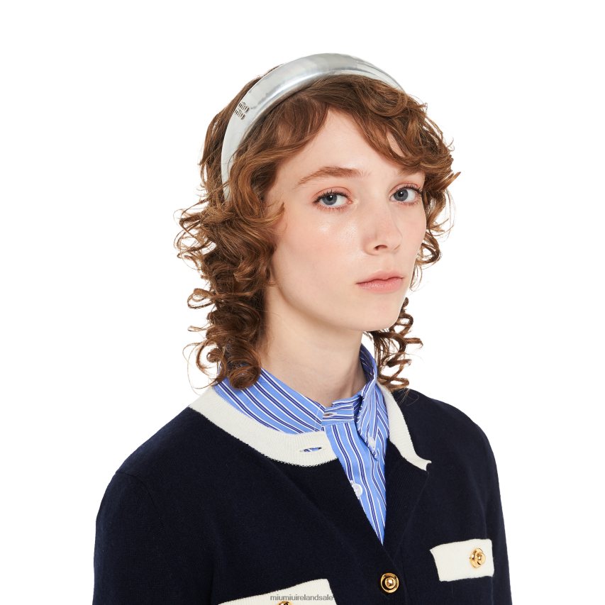 One of the essential accessories of the Miu Miu collection, this headband made of metallic fabric stands out for the lettering logo that enhances the design, adding an iconic note.