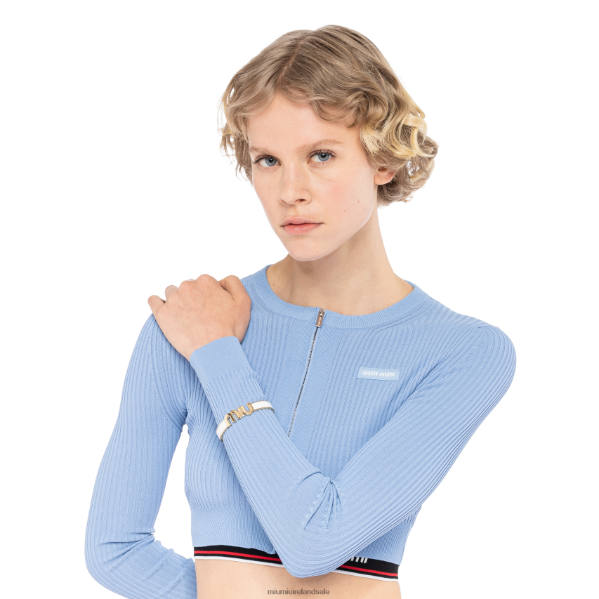 The Miu Miu logo is the protagonist of a selection of enameled metal bracelets. The iconic symbol stands out, giving the accessory modern allure.