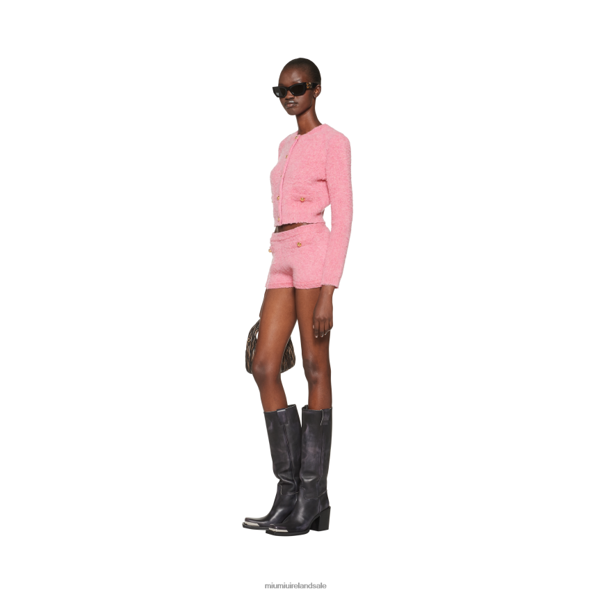 Conveying a sense of subtlety and intimacy, the knitwear items in the new Miu Miu collection are the epitome of romanticism and modernity. Exquisite yarns and a mini silhouette are featured on this stitched boucle cardigan.