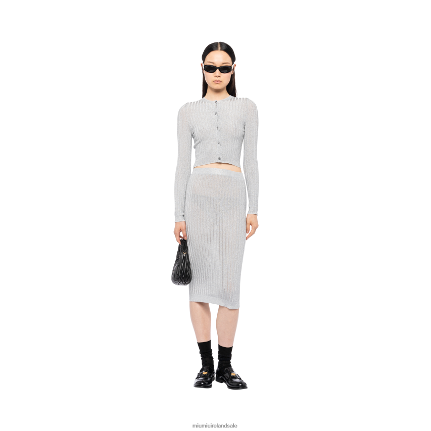 IE Miu MiuReady To Wear Lame Cardigan Silver XJN62J780