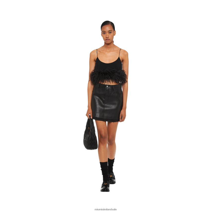 Bold spirit and innovative details that overturn the classic idea of luxury. Miu Miu reinvents the definition of elegance, with leather items that express a new strength and a new representation of femininity. This miniskirt has a distinctive visible raw-cut lining which illustrates unfinished processes portraying rebellious elegance.