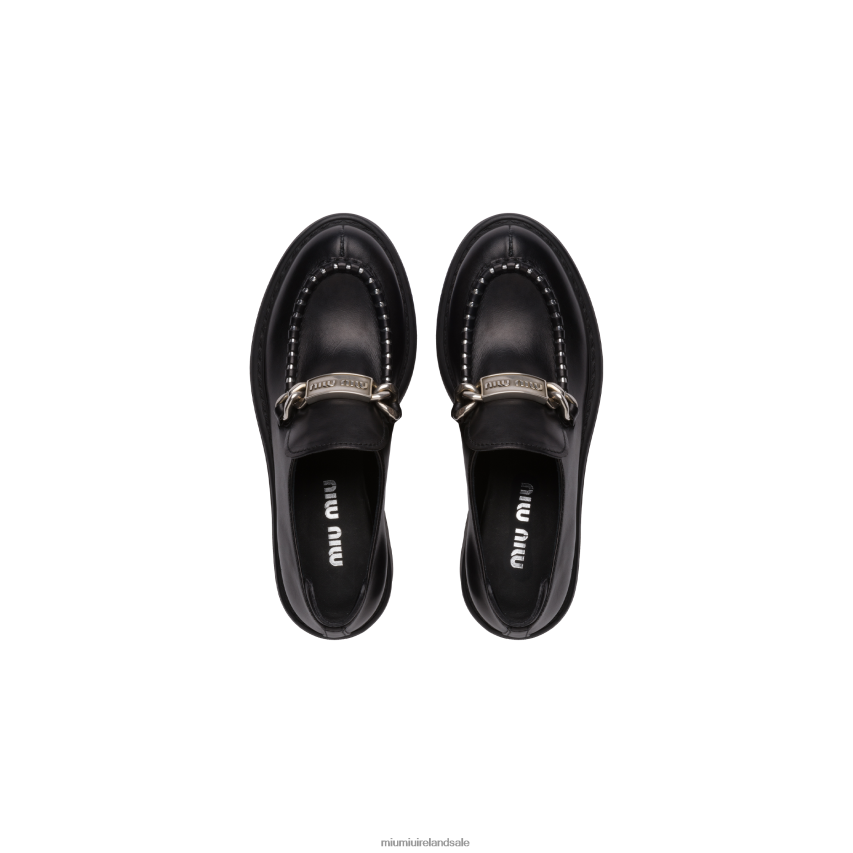 Sleek, simple, and bold, these leather loafers express sinuous, versatile charm with elegant tones. The metal detail that closes the upper together with the logo on the bit create a delicate play of reflections that enhance the shoe.
