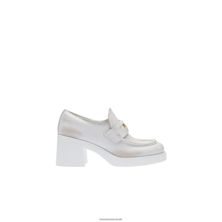Miu Miu reinterprets the iconic loafer in a subversive and irreverent version. Bold lines are combined with classic details and Miu Miu's rebellious character. In the 1950s, loafers were part of the uniform of American prep school and college students. Students against wearing the required attire started inserting a one cent coin in the slot of the band, which led to it being called the Penny Loafer.