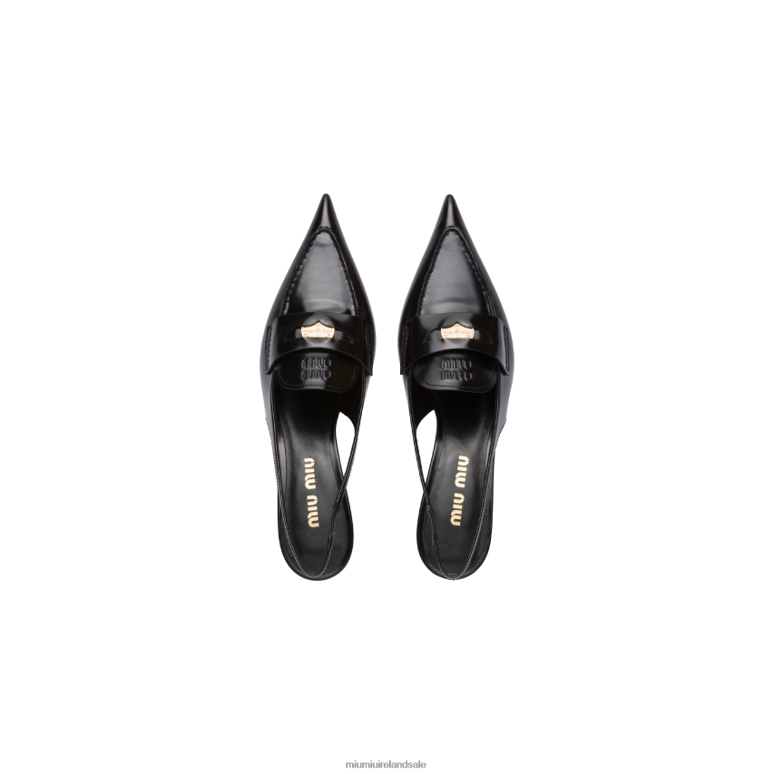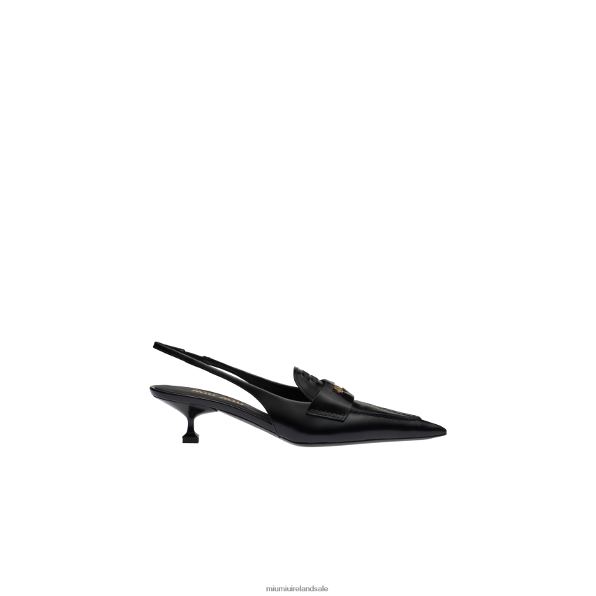In the 1950s, loafers were part of the uniform worn by American college students. Opposed to wearing a uniform, students started inserting a penny in the slot on the leather strap, which originated the name "penny loafer." This timeless footwear synonymous with tradition is reimagined by Miu Miu in the new collection in a bolder version with kitten heel.
