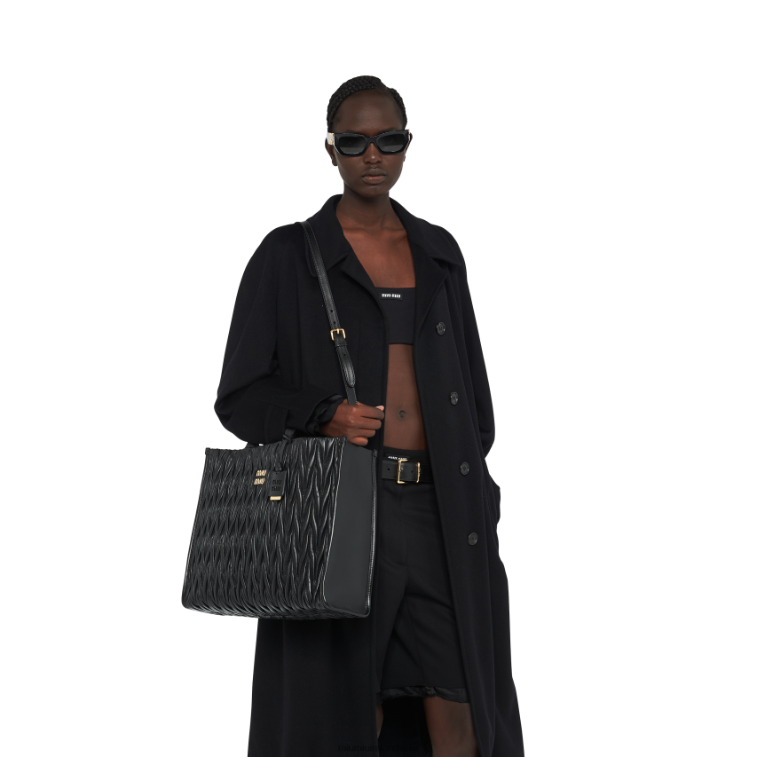 Fine matelasse workmanship updates the dynamic, versatile, and cosmopolitan silhouette of the nappa leather tote through its extremely sophisticated, textured, and three-dimensional effect. The lettering logo on the front, which echoes the different metallic finishes of the hardware, stands out against the refined artisan workmanship with an iconic and immediately recognizable feel. Leather handles, the removable shoulder strap and internal pockets contribute to the functional and modern design of the bag.