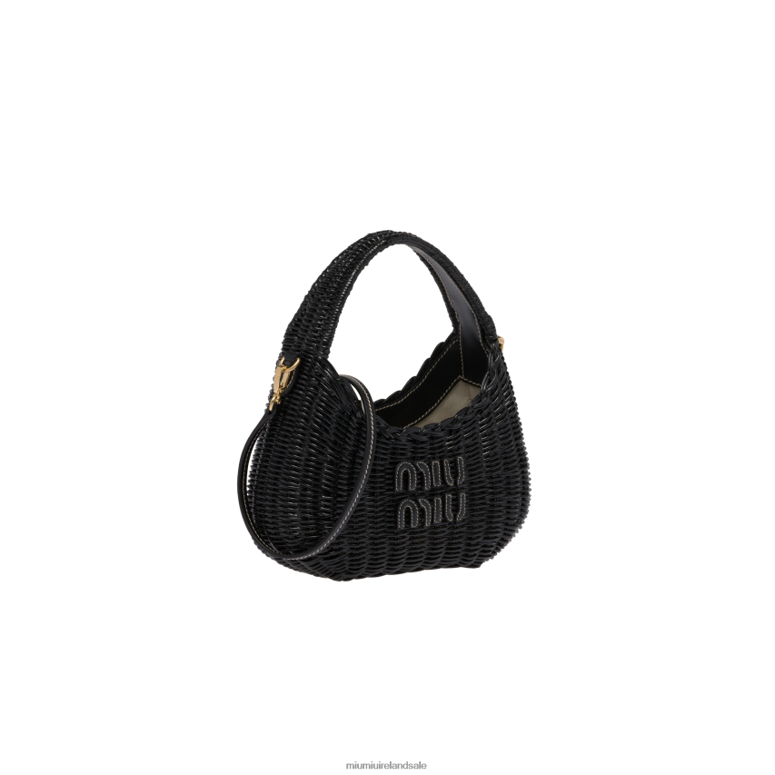 IE Miu MiuCollection Wander Wicker Handbag Black XJN62J23