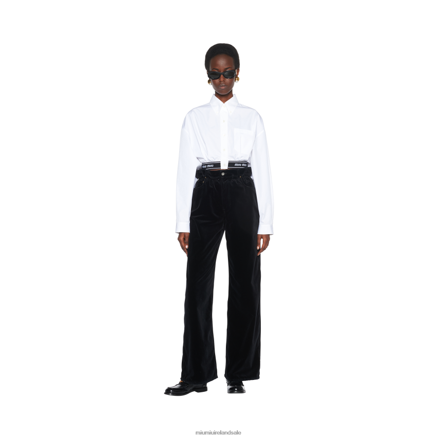 Playing with formal dress codes, Miu Miu mixes different purposes, dreams, and realities to create garments with sophisticated modern allure like these straight velvet pants.