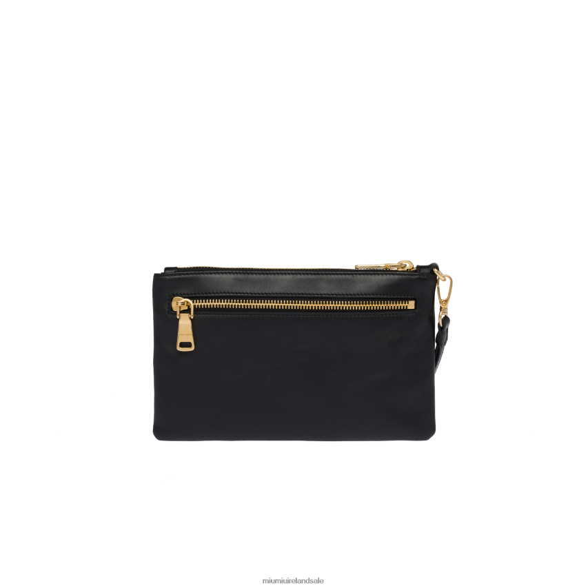 Fine leather is combined with the iconic touch of the Miu Miu metal logo in this new pouch. The compact lines, external zipper pocket, and removable wristlet complete the design and functionality of the accessory.