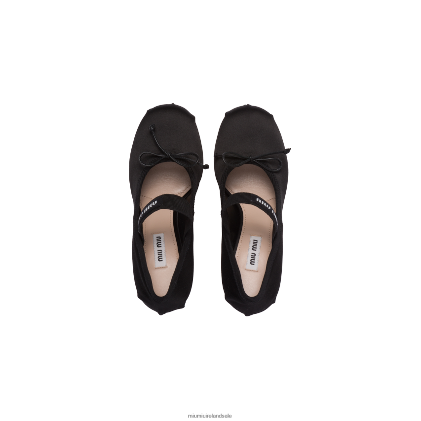 These satin pumps with ballerina toe are accented with the classic bow and the elasticized strap on the instep. The lettering logo label stands out on the front.