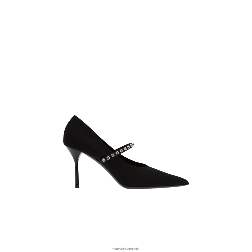 IE Miu MiuShoes Technical Fabric Pumps With Crystals Black XJN62J202