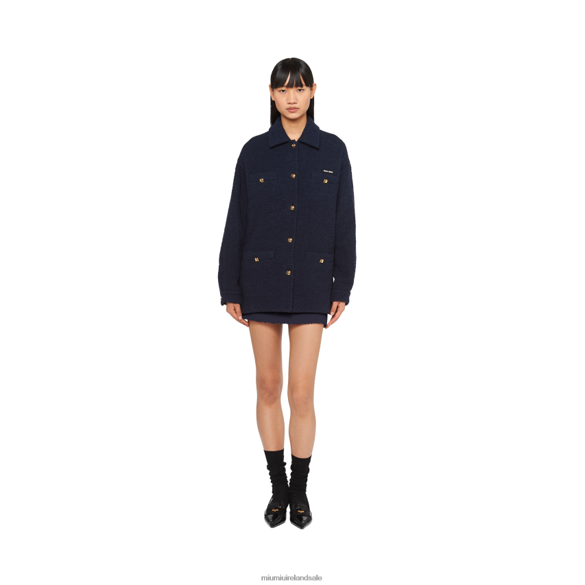 The deliberately curly appearance of the fine boucle fabric gives this new blouson jacket a cozy look. The pockets, a recurring element of the collection interpreted as a detail that is both functional and decorative, are brightened by the gold buttons. The visible logo label patch completes the garment with an iconic touch.