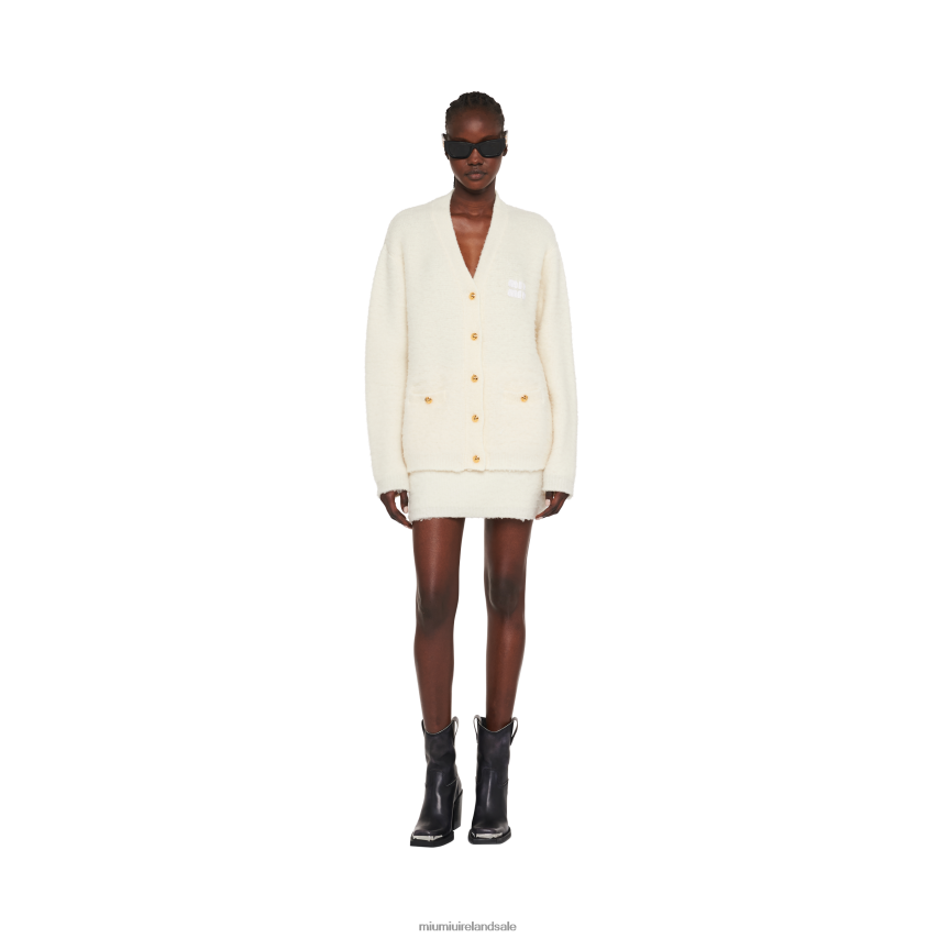 Conveying a sense of subtlety and intimacy, the knitwear items in the new Miu Miu collection are the epitome of romanticism and modernity. Exquisite yarns and an oversized silhouette are features of this stitched boucle cardigan.