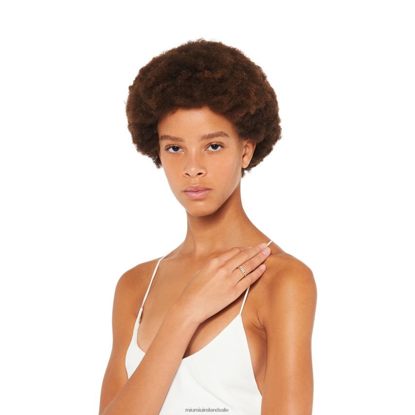 The Miu Miu logo is the protagonist of this ring. Sparkling crystals embellish this piece, creating a feminine contrast with the modern steel finish of the metal.