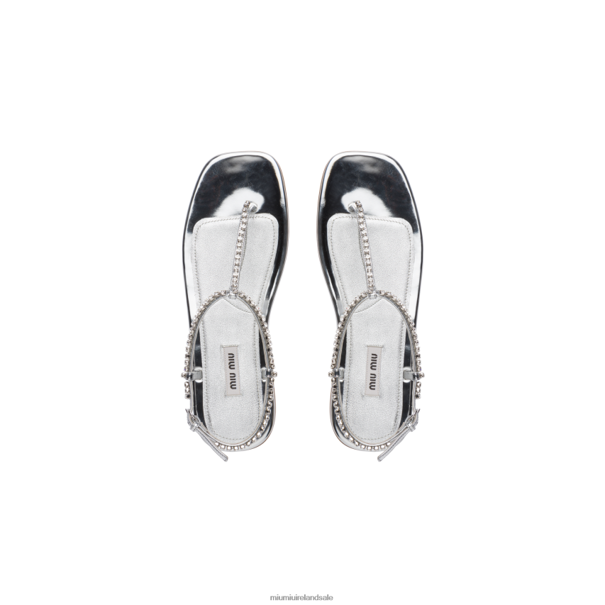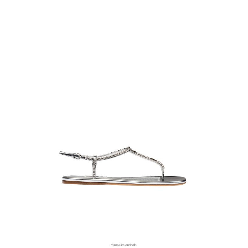 IE Miu MiuShoes Metallic Technical Fabric Thong Sandals Silver XJN62J264