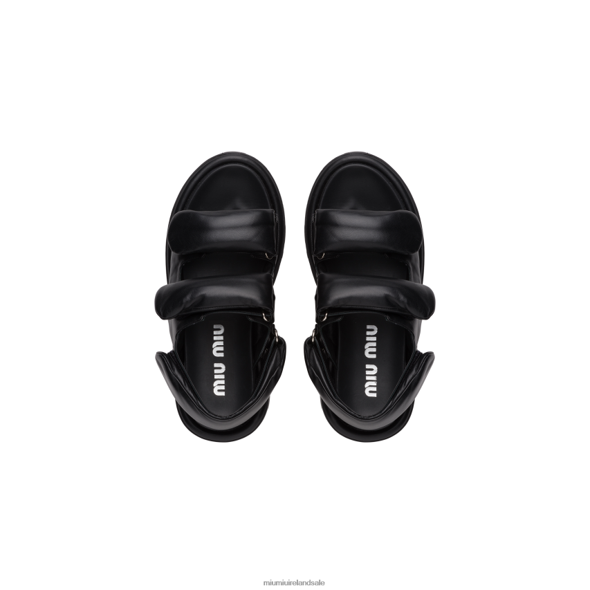 Sporty allure and a minimalist design characterize these padded nappa leather sandals with a double hook-and-loop strap on the front and one on the ankle. New volumes, contemporary and original silhouettes.