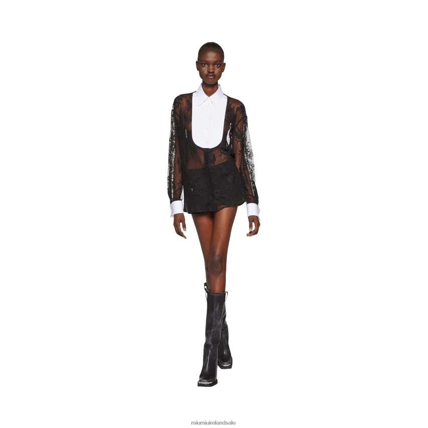 IE Miu MiuReady To Wear Lace Shirt Black XJN62J618
