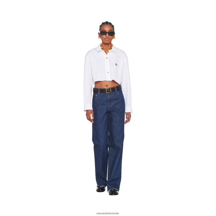 An oversized silhouette distinguishes this poplin shirt where modernism and artisan workmanship meet. A play of references, blending innovation and retro inspirations, influences the new Miu Miu collection.