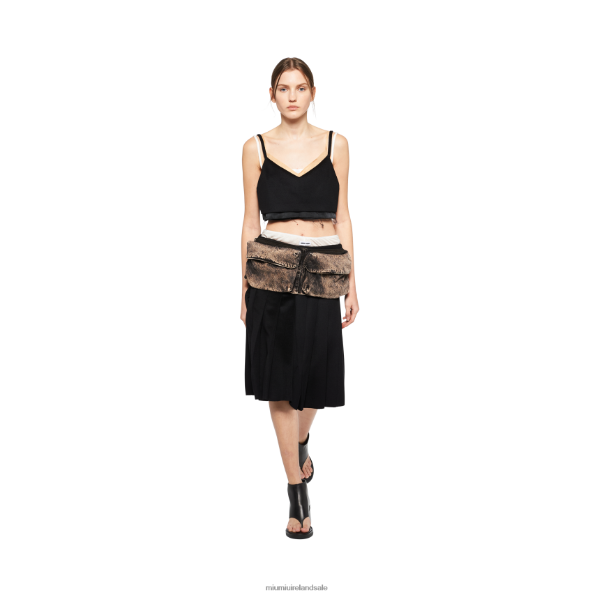 This velour top, present during the Spring-Summer 2023 show, is the result of a layering of materials, colors and suggestions made to bare the skin, revealing new realities and arousing emotions. The garment responds to a notion of fashion as a means of translating a reaction to current reality into material form. The tonal embroidered logo stands out on the back and completes the aesthetic with a distinctive detail.