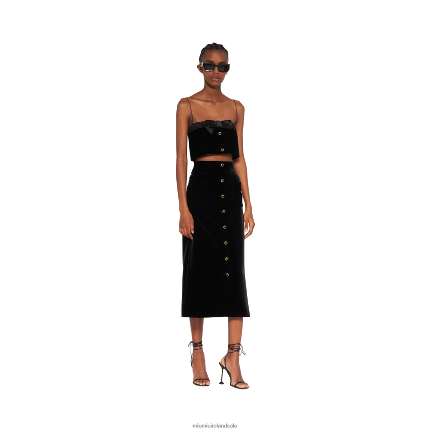 The bow, one of the most iconic symbols of Miu Miu collections, adorns this velvet top. A cropped fit defines the silhouette, embellished with a jacquard logo.