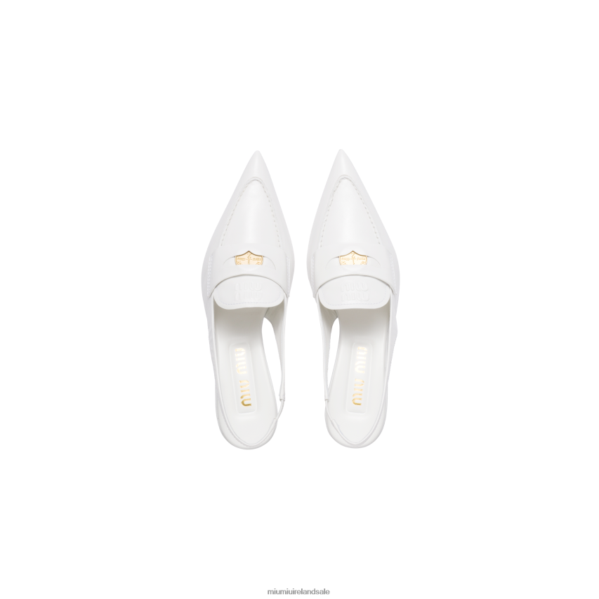Miu Miu reinterprets the iconic loafer in an ultra-feminine, glamorous and irreverent version. The tapered lines and distinct character are paired with classic details. In the 1950s, loafers were part of the uniform of American prep school and college students. Students against wearing the required attire started inserting a one cent coin in the slot of the band, which led to it being called the Penny Loafer. The embossed logo on the tongue completes the shoe with a distinctive note.