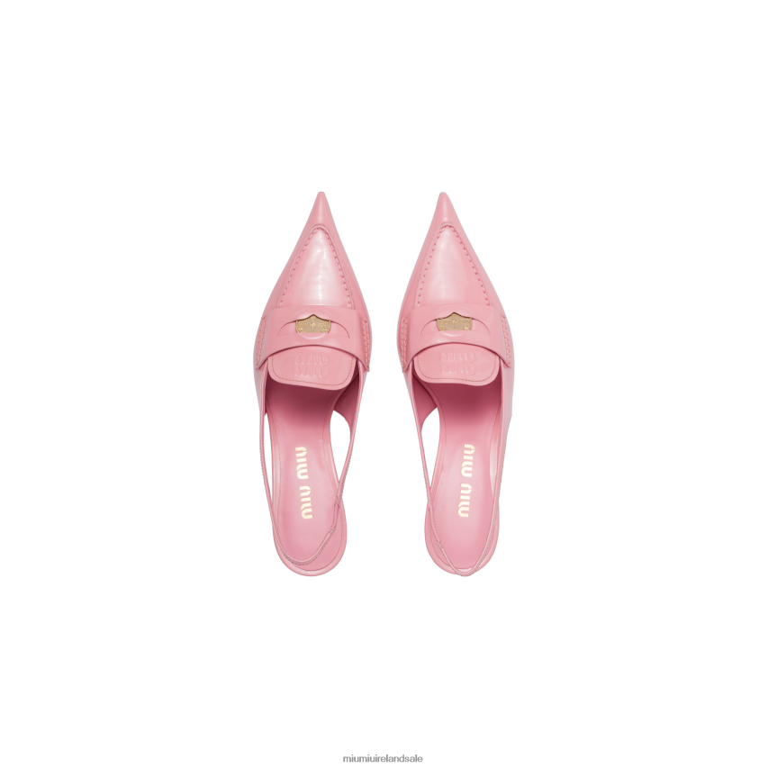 In the 1950s, loafers were part of the uniform worn by American college students. Opposed to wearing a uniform, students started inserting a penny in the slot on the leather strap, which originated the name "penny loafer." This timeless footwear synonymous with tradition is reimagined by Miu Miu in the new collection in a bolder version with kitten heel.