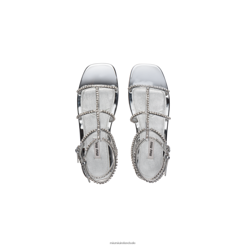 IE Miu MiuShoes Metallic Technical Fabric Sandals Silver XJN62J261