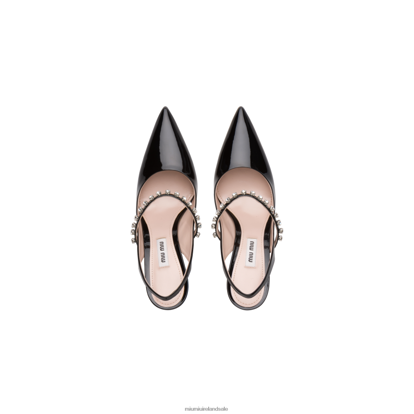 The crystal decoration adds a touch of light to these patent leather slingbacks with elegant silhouette.