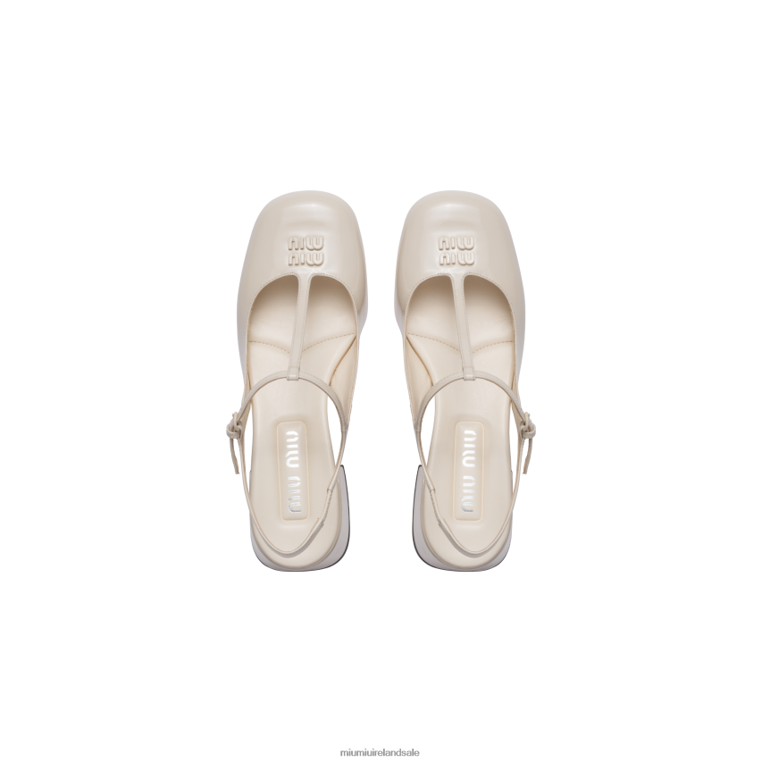 A hybrid design between a ballerina and a pump characterizes these new patent leather shoes. The rounded lines give the shoe a harmonious aesthetic together with the contrasts between narrow details and the chunky heel. The hot-stamped logo decorates the original style.
