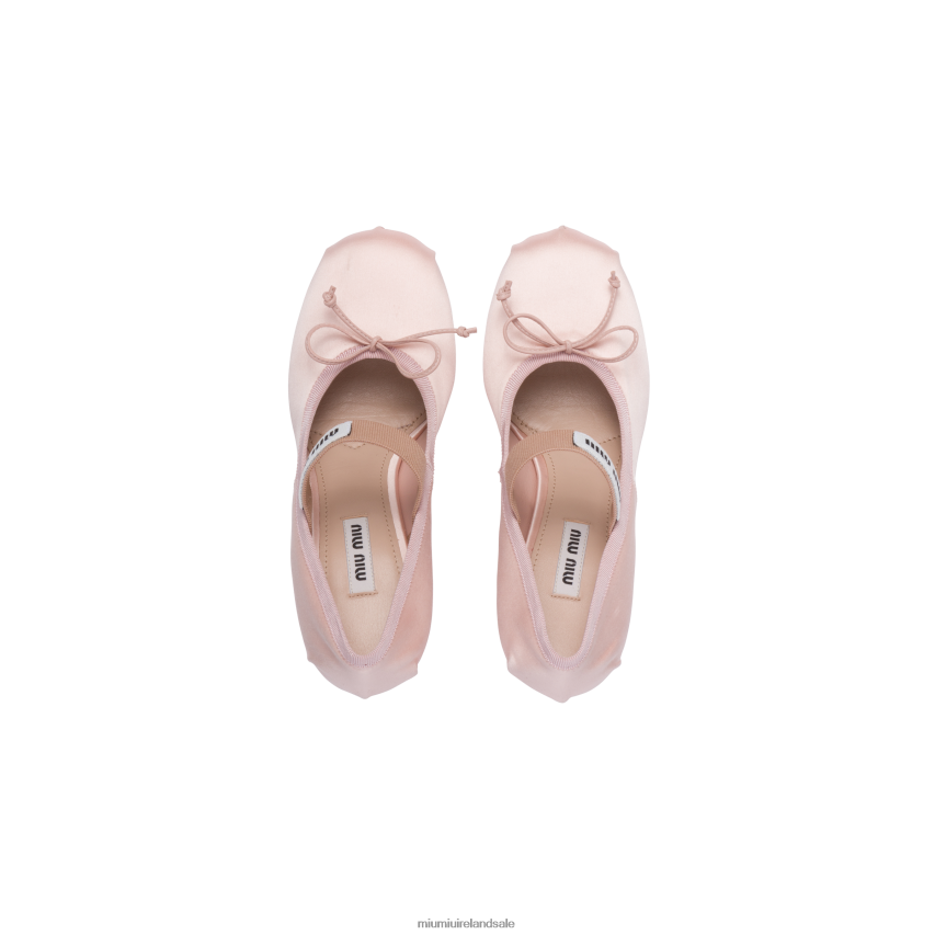 These satin pumps with ballerina toe are accented with the classic bow and the elasticized strap on the instep. The lettering logo label stands out on the front.