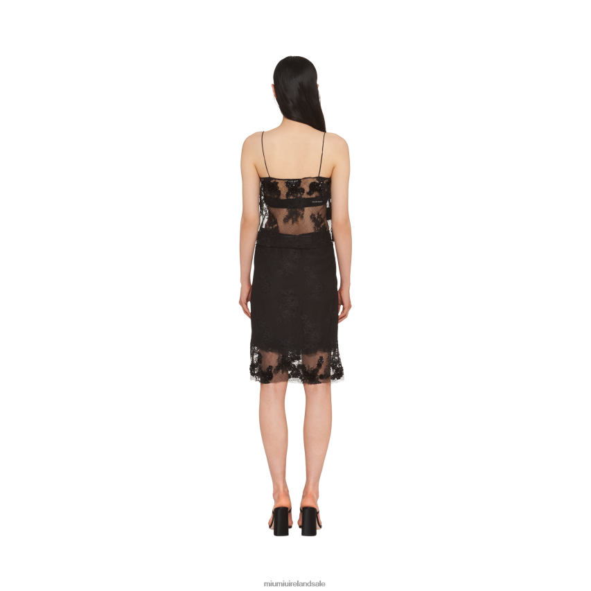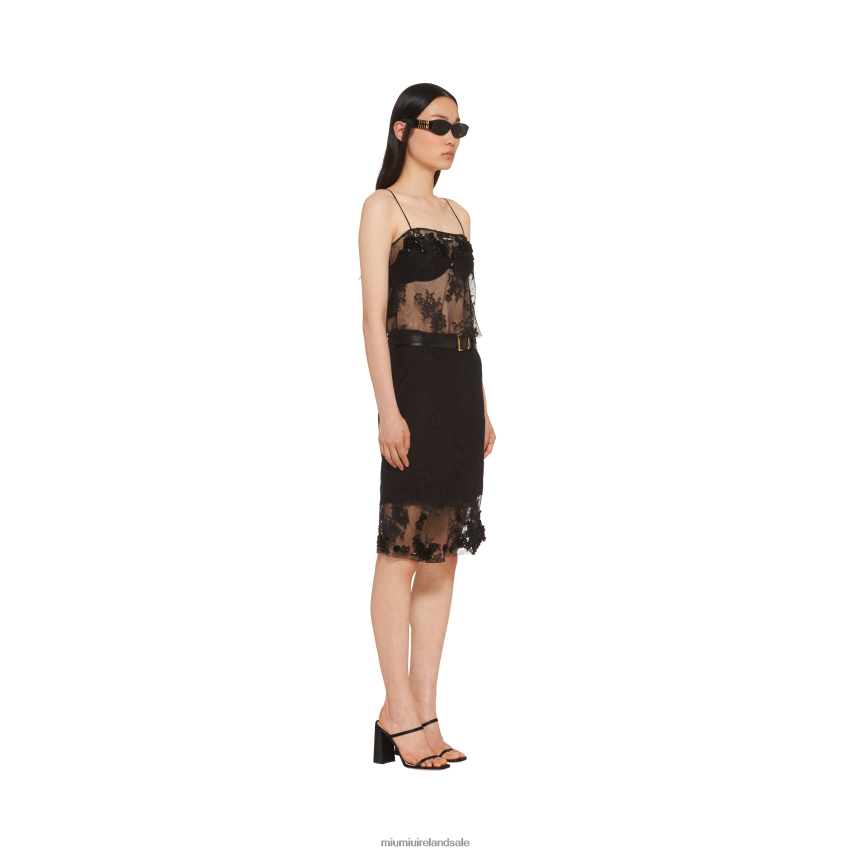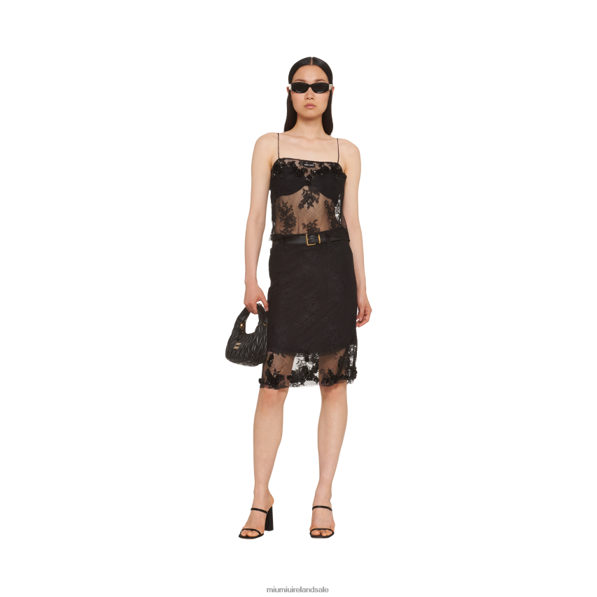 This lace skirt enriched with bright, finely embroidered flowers is steeped in romantic allure.