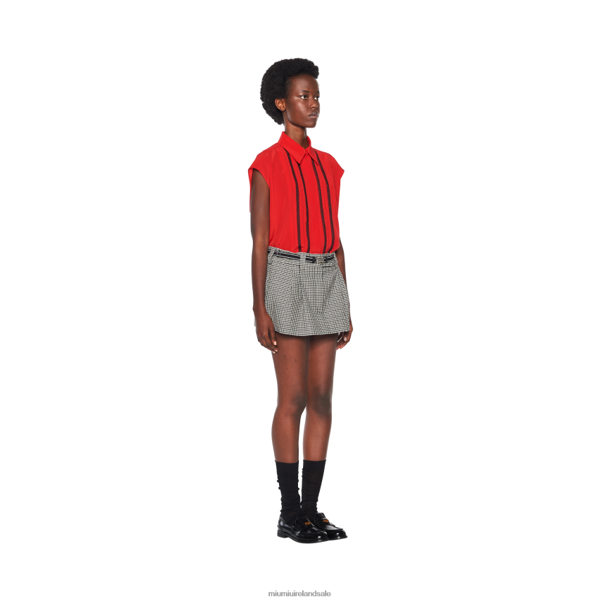 With references to retro fashion and British elegance, this garment blends irony and romanticism. The Miu Miu logo is embroidered on this houndstooth check skirt.
