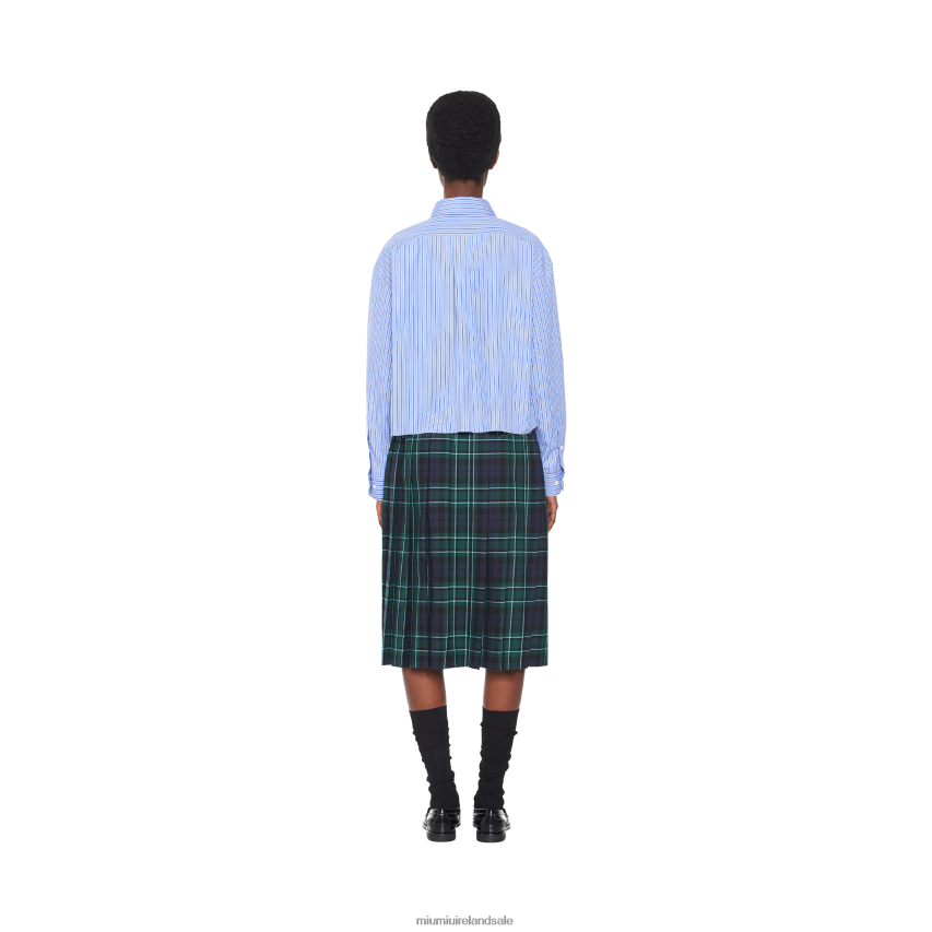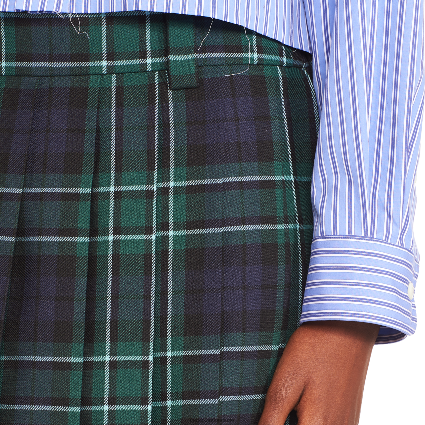 With references to retro fashion and British elegance, this garment blends irony and romanticism. The Miu Miu logo is embroidered on this pleated plaid skirt.