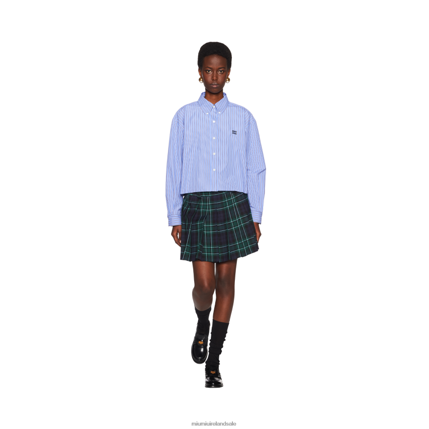 With references to retro fashion and British elegance, this garment blends irony and romanticism. The Miu Miu logo is embroidered on this pleated plaid skirt.