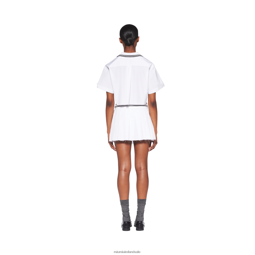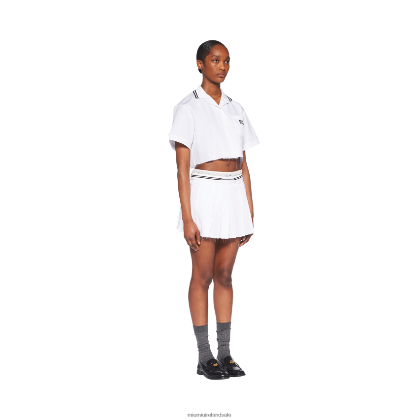 A style inspired by the tennis world meets Miu Miu's dynamic and modern femininity in this poplin miniskirt. The crisp fabric features pleating that adds movement, while the jacquard knit logo echoing the waistband completes the design with a refined contrast and distinctive, iconic note.