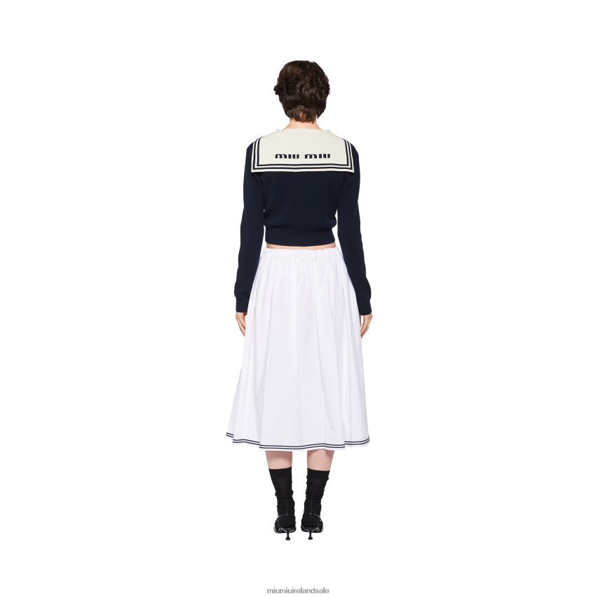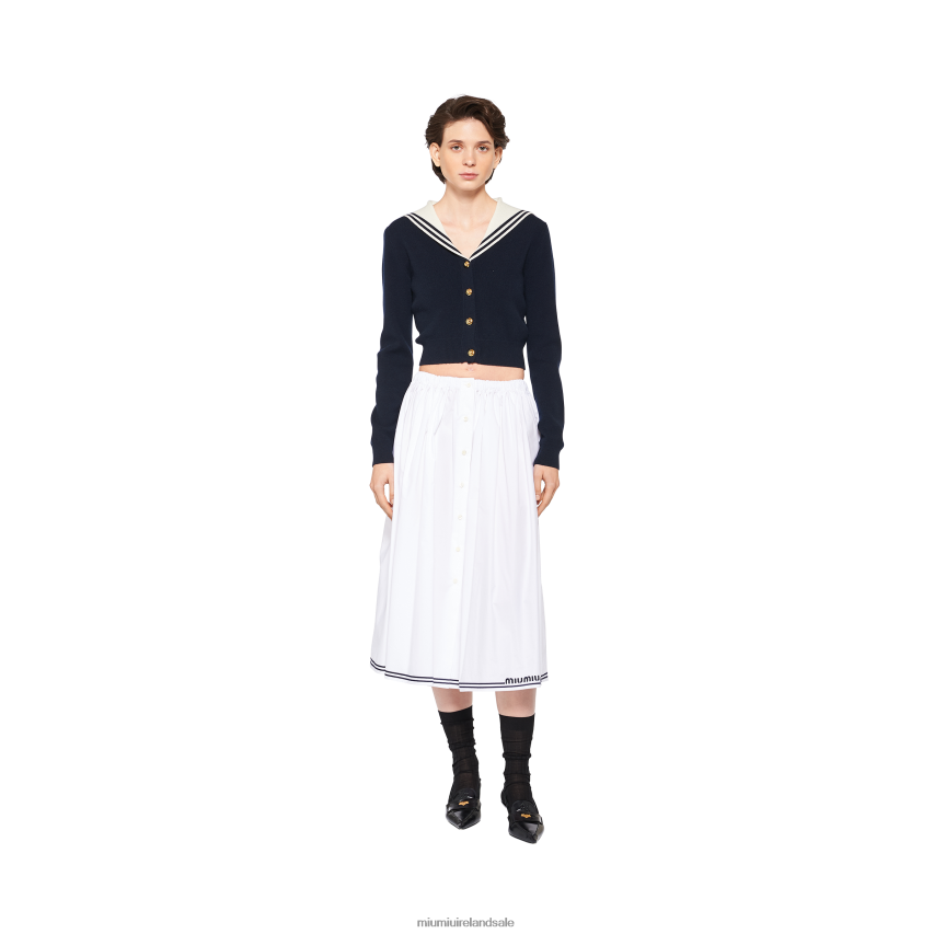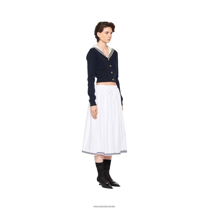 This new skirt combines the crisp texture of poplin with the elongated silhouette and Miu Miu's bold character. The embroidered logo completes the design with an iconic and distinctive note.