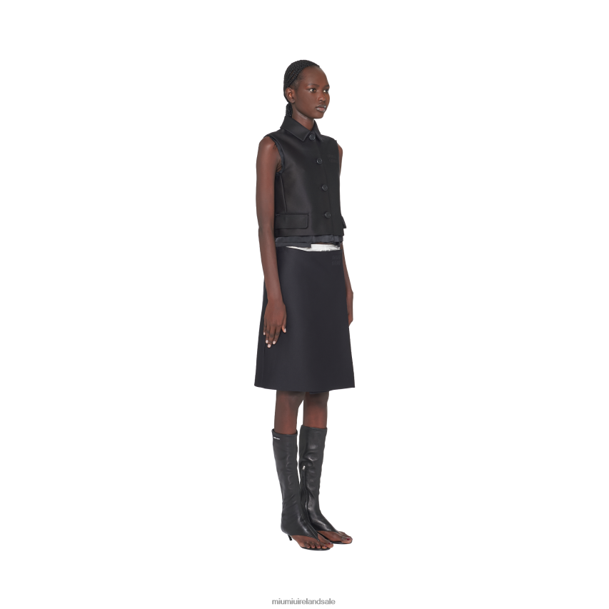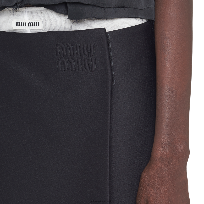 During the Spring-Summer 2023 show, this radzimir skirt represented a concept of fashion as an integral part of real life where utility, benefit, and service affect physical expression. Miu Miu's sophisticated style reinterprets the classic pencil skirt with a contemporary twist. The embroidered tonal logo decorates this new vision of style.