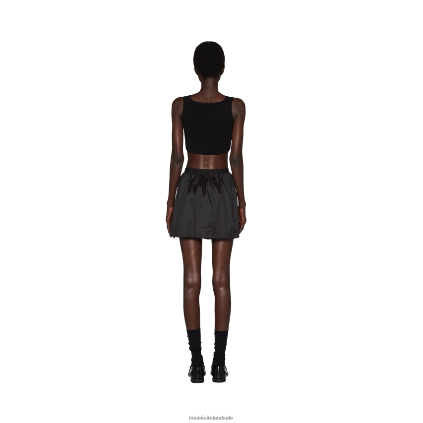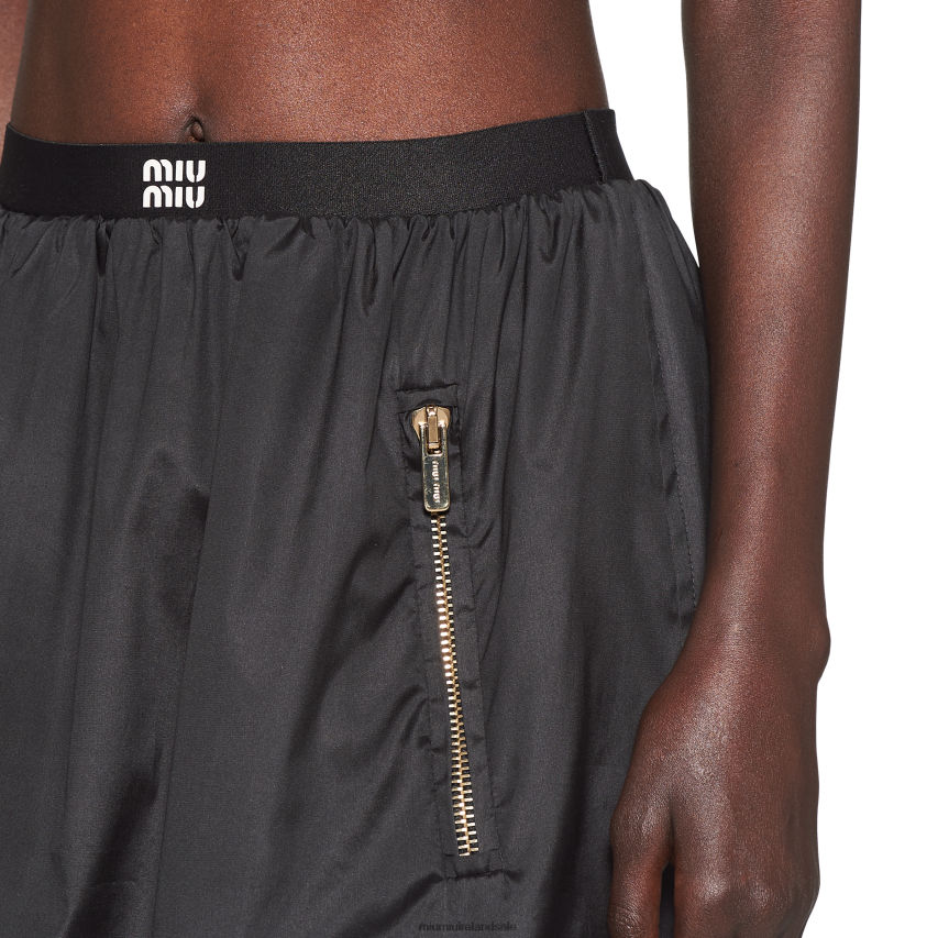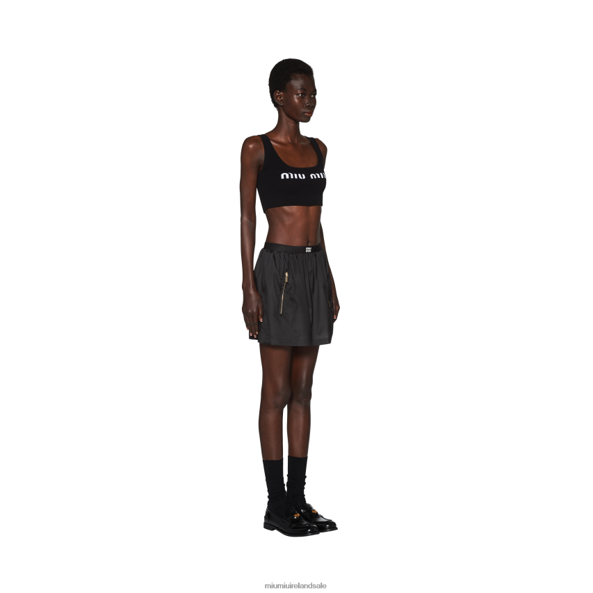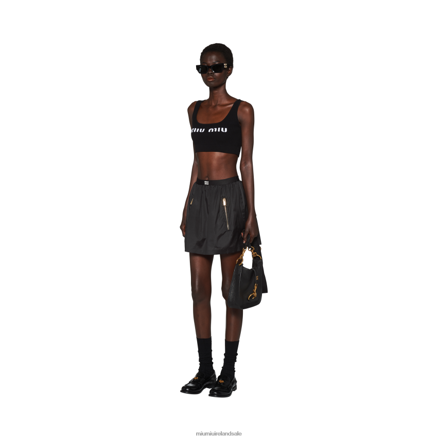 The sportswear world intercepts distinctive Miu Miu style in this new technical silk miniskirt. Zipper pockets stand out against the extremely smooth, fluid texture of the fabric, while the elasticized waistband with logo completes the garment with an iconic touch.