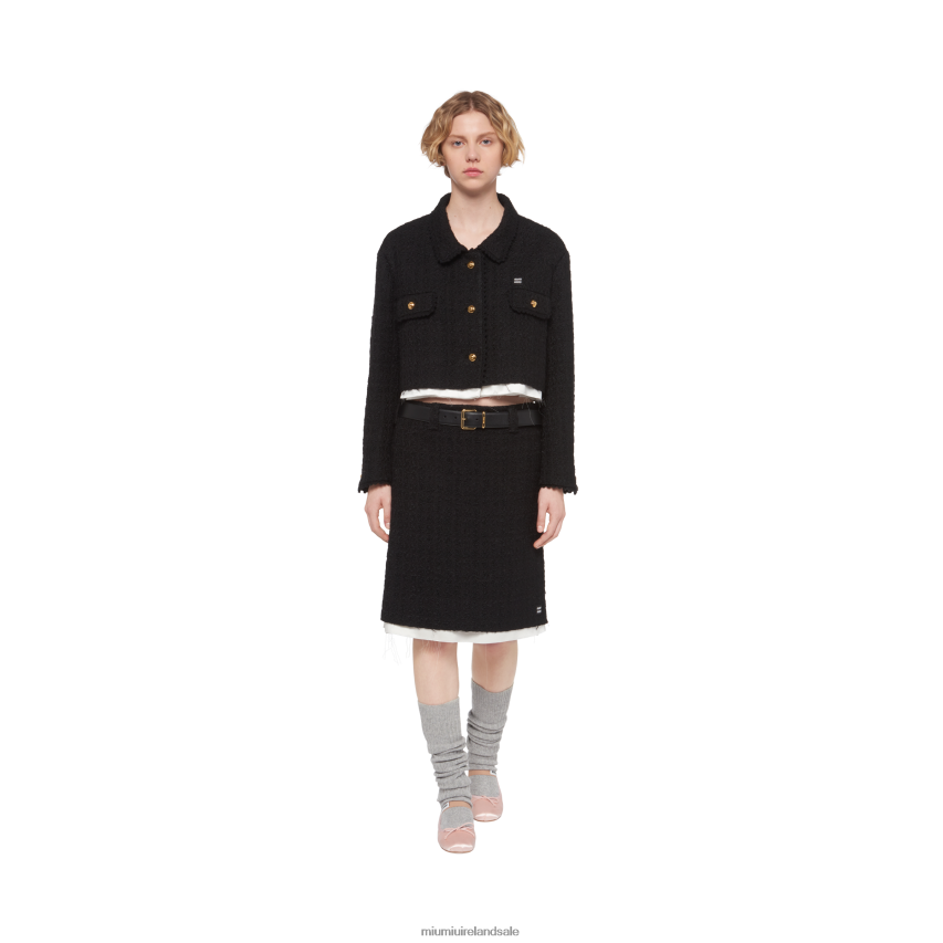 This tweed skirt features a mix of stylistic codes, blending rebellious elegance and modern tailoring. The construction process is left exposed through the raw-cut lining, while double belt loops at the waist reimagine classic designs.