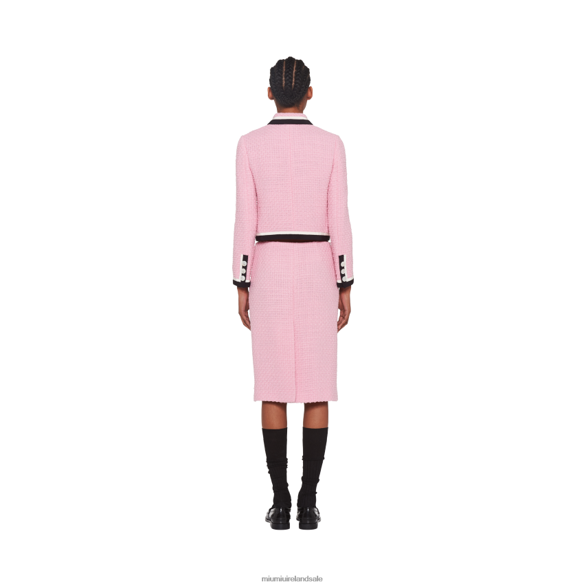 Rigor and freedom, modernism and classicism: this tweed pencil skirt combines different universes that make up Miu Miu's DNA. A hybrid design in a traditional menswear fabric is reimagined, and the formal line of classic tailoring is transformed into a new expression of femininity.