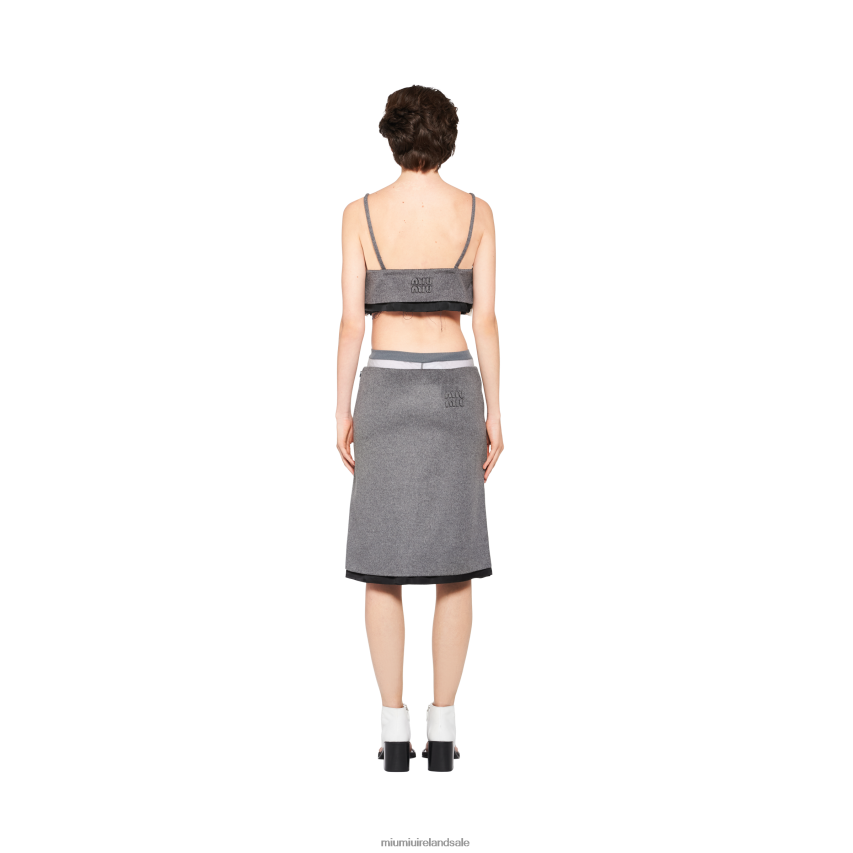 This velour skirt appearing in the Spring-Summer 2023 fashion show expresses a notion of fashion as a means of translating a reaction to current reality into material form. The garment with a compact, velvety feel was created to arouse emotions and convey a sense of elegant, irreverent and bold femininity. The embroidered logo is an original, iconic, and distinctive embellishment.