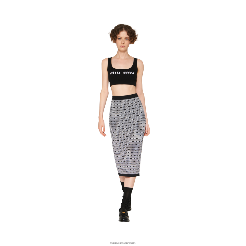 Iconic style is the protagonist in this new viscose skirt. The jacquard logo almost entirely covers the garment, linking it to irreverent femininity. The ribbed knit waistband and hem complete the skirt with a refined contrast.