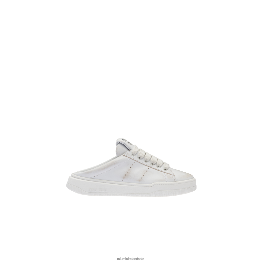 IE Miu MiuShoes Bleached Leather Sneakers White XJN62J290