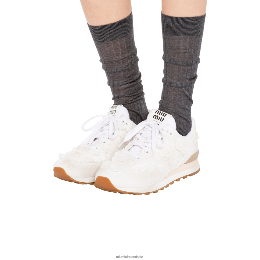 Presented for the Spring Summer 2022 fashion show, this exclusive shoe is the result of a collaboration between Miu Miu and New Balance. A hybrid design, this sports shoe is entirely reinterpreted in denim with raw-cut frayed edges, part of a construction process exposed to underline the spontaneity of these actions.